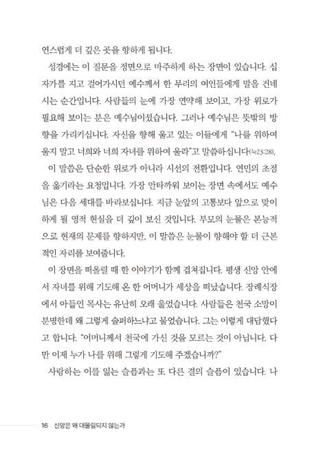 Á¦ ÆÇ´ÜÀÌ Èå·ÁÁú ¶§, ¡®¿¹¼ö´Ô󷳡¯À̶ó´Â ¸»ÀÌ ³Ê¹« ³ô°í ¸Ö°Ô ´À²¸Áú ¶§°¡ ÀÖ½À´Ï´Ù. ±×·¯³ª ¿¹¼ö´ÔÀ» µû¸£·Á ¾Ö½è´ø ±× »ç¶÷µéÀ» ¶°¿Ã¸®¸é ±æÀÌ Á¶±Ý ´õ ¼±¸íÇØÁý´Ï´Ù. ¡®±×ºÐµéÀ̶ó¸é ¾î¶² ¼±ÅÃÀ» ÇßÀ»±î¡¯¸¦ »ý°¢ÇÏ¸é ±âÁØÀÌ Á¤¸®µË´Ï´Ù. ÀÌ ÁöÁ¡¿¡¼ ºÎ¸ð¸¦ ÇâÇÑ ¿äûÀÌ ³ª¿É´Ï´Ù. Àڳడ ¼±ÅÃÀÇ °¥¸²±æ¿¡ ¼³ ¶§, Á¦ÀÏ ¸ÕÀú ¶°¿Ã¸± ¼ö ÀÖ´Â »ç¶÷ÀÌ µÇ¾î ´Þ¶ó´Â ¿äûÀÔ´Ï´Ù. ¡®¿ì¸® ºÎ¸ð¶ó¸é ÀÌ·¸°Ô ÇßÀ» °Å¾ß.¡¯ ¡®¿ì¸® Áý¿¡¼´Â ÀÌ·¸°Ô °áÁ¤ÇßÀ» °Å¾ß.¡¯ ±× ±â¾ïÀÌ ¾ÆÀÌÀÇ ³ªÄ§¹ÝÀÌ µÇ°Ô ÇØ ´Þ¶ó´Â ¿äûÀÔ´Ï´Ù. À̰ÍÀº ºÎ´ãÀÌ ¾Æ´Ï¶ó »ç¸íÀÔ´Ï´Ù. ½Å¾ÓÀº °á±¹ »ç¶÷À» ÅëÇØ Àü´ÞµÇ±â ¶§¹®ÀÔ´Ï´Ù. ¸»¾¸Àº ±Í·Î µé¸®Áö¸¸, ±âÁØÀº »îÀ» ÅëÇØ °¢Àε˴ϴÙ. 118