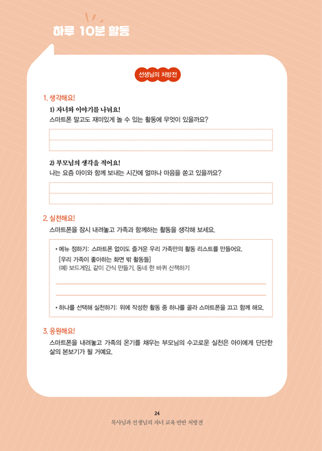 Ưº°È÷ º» ¼Àû¿¡¼ ÁÖ¸ñÇÒ Á¡Àº ±³»çÀÇ ½ÇÁ¦Àû Á¦¾È°ú ¸ñȸÀÚÀÇ ½Å¾ÓÀû ÅëÂûÀÌ ¼·Î Á¶È¸¦ ÀÌ·é´Ù´Â »ç½ÇÀÔ´Ï´Ù. µÎ °üÁ¡ÀÌ ÇÔ²² Á¦½ÃµÇ¾î ÀÌÇØ´Â ±í¾îÁö°í, Àû¿ëÀº ÈξÀ ´Ù¾çÇØÁý´Ï´Ù. °¢ ÀåÀÇ ¸¶Áö¸·¿¡ Á¦½ÃµÈ ¡®ÇÏ·ç 10ºÐ Ȱµ¿¡¯Àº ÀÌ Ã¥ÀÇ ½ÉÀå°úµµ °°½À´Ï´Ù.