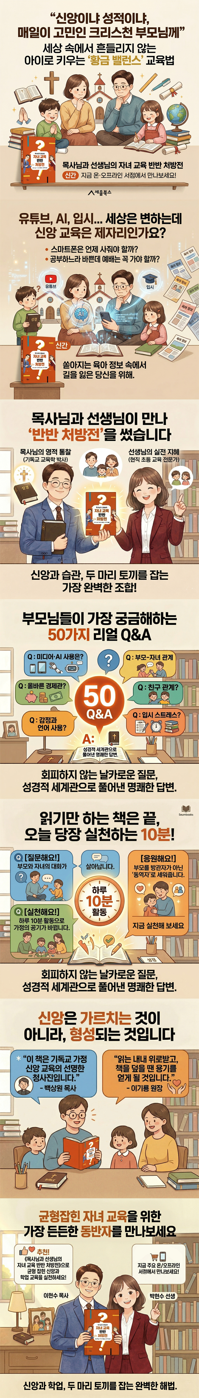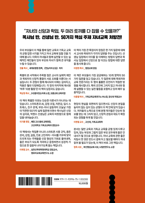 º»¼´Â º¹ÀâÇÏ°Ô º¯ÈÇÏ´Â ±³À°ÀÇ ÆÄµµ ¼Ó¿¡¼ ½Å¾Ó°ú Çо÷ »çÀÌÀÇ °¥µîÀ¸·Î ´ä´äÇØÇÏ´Â Å©¸®½ºÃµ ºÎ¸ð¿Í ±³È¸Çб³ ±³»çµéÀ» À§ÇÑ Ã¥ÀÔ´Ï´Ù. ±âµ¶±³ ±³À°ÇÐÀÚÀÎ ¸ñȸÀÚÀÇ ½ÅÇÐÀû ÅëÂû°ú ÇöÁ÷ ÃÊµî ±³»çÀÇ ½ÇÀüÀû ÁöÇý¸¦ Çѵ¥ ¸ð¾Æ ¹Ìµð¾î¡¤ÀԽᤰæÁ¦°ü µî °¡Á¤ ±³À°ÀÌ Á÷¸éÇÑ 50°¡Áö ½ÇÁ¦ Áú¹®¿¡ ´äÇÕ´Ï´Ù. ¼º°æÀû ¼¼°è°ü¿¡ ±âÃÊÇÑ ¸íÄèÇÑ ´äº¯À» Á¦½ÃÇÔÀº ¹°·Ð, ¡®Áú¹®ÇØ¿ä, ½ÇÃµÇØ¿ä, ÀÀ¿øÇؿ䡯·Î À̾îÁö´Â ¡®ÇÏ·ç 10ºÐ Ȱµ¿¡¯À» ÅëÇØ ºÎ¸ð¸¦ ¹æ°üÀÚ°¡ ¾Æ´Ñ µ¿¿ªÀÚ·Î ¼¼¿ó´Ï´Ù. ¶ÇÇÑ ±³È¸Çб³ ½Å¾Ó ±³À°À» ÁÖÁß »îÀÇ ¿¹¹è·Î È®Àå½ÃŰ´Â ¼±¸íÇÑ ½Å¾Ó ±³À°ÀÇ Ã»»çÁø(MAP)À» Á¦°øÇÔÀ¸·Î½á, ÀÚ³àµéÀÇ ½Å¾ÓÀÌ ¿ÂÀüÈ÷ Çü¼ºµÇµµ·Ï µ½°í ÀÖ½À´Ï´Ù. ½Å¾Ó°ú Çо÷À̶ó´Â µÎ °¡Áö Ä¿´Ù¶õ ÁÖÁ¦ ¾Õ¿¡¼ °í¹ÎÇÏ´Â ÀÌ ¶¥ÀÇ ¸ðµç ºÎ¸ð¿Í ±³È¸Çб³ ±³»çµé¿¡°Ô °¡Àå µçµçÇÏ°í ±ÕÇü ÀâÈù ±³À°ÀÇ µ¿¹ÝÀÚ°¡ µÇ¾î ÁÙ °ÍÀÔ´Ï´Ù.