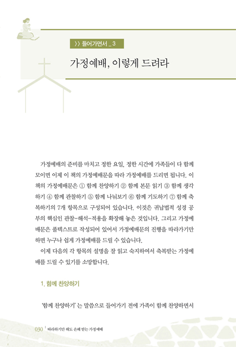 ³Ý°, ÀÌ Ã¥ÀÇ °¡Á¤¿¹¹è¹® ³»¿ëÀº ¡®¼º°æÀÇ ÇÙ½ÉÁÖÁ¦¡¯¸¦ µû¶ó°¡°í ÀÖ´Ù. ±×·¯¹Ç·Î ÀÌ Ã¥À» µû¶ó °¡Á¤¿¹¹è¸¦ µå¸®¸é ¼º°æÀÇ Å« È帧À» ÀÌÇØÇÒ ¼ö ÀÖ°Ô µÇ°í, ½ÅÇаú ½Å¾ÓÀÇ ±ÕÇüÀ» °®Ãß´Â µ¥ µµ¿òÀ» ÁØ´Ù. ±×·¯¹Ç·Î ÀÌ °¡Á¤¿¹¹è¼ÀÇ ¼ø¼¸¦ µû¶ó °¡Á¤¿¹¹è¸¦ ¼º½ÇÈ÷ ÁøÇàÇϱ⸸ ÇØµµ ±× ½Å¾ÓÀû À¯ÀÍÀº ½Ç·Î ¾öû³ª´Ù°í ÇÒ ¼ö ÀÖ´Ù.