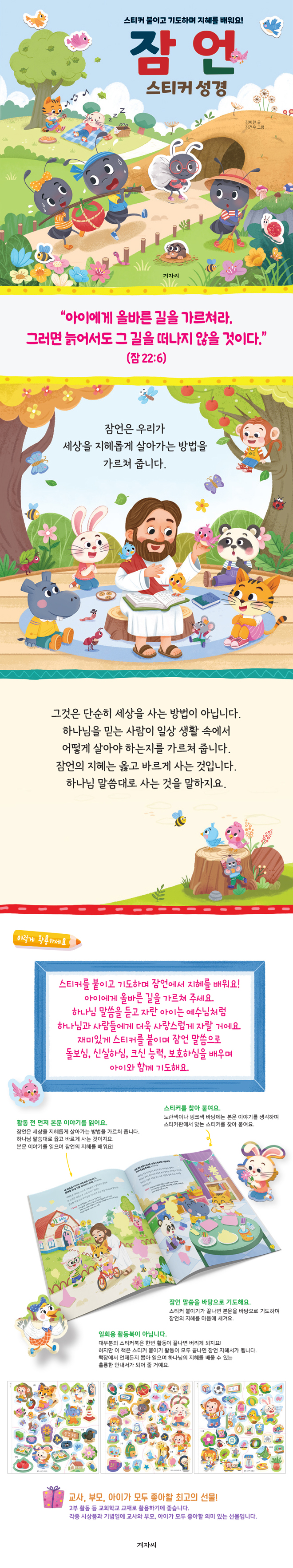 ![]() ¡°¾ÆÀÌ¿¡°Ô ¿Ã¹Ù¸¥ ±æÀ» °¡¸£ÃĶó. ±×·¯¸é ´Ä¾î¼µµ ±× ±æÀ» ¶°³ªÁö ¾ÊÀ» °ÍÀÌ´Ù.¡± (Àá 22:6) Àá¾ðÀº ¿ì¸®°¡ ¼¼»óÀ» ÁöÇì·Ó°Ô »ì¾Æ°¡´Â ¹æ¹ýÀ» °¡¸£ÃÄ ÁÝ´Ï´Ù. ±×°ÍÀº ´Ü¼øÈ÷ ¼¼»óÀ» »ç´Â ¹æ¹ýÀÌ ¾Æ´Õ´Ï´Ù. Çϳª´ÔÀ» ¹Ï´Â »ç¶÷ÀÌ ÀÏ»ó »ýȰ ¼Ó¿¡¼ ¾î¶»°Ô »ì¾Æ¾ß ÇÏ´ÂÁö¸¦ °¡¸£ÃÄ ÁÝ´Ï´Ù. Àá¾ðÀÇ ÁöÇý´Â ¿Ç°í ¹Ù¸£°Ô »ç´Â °ÍÀÔ´Ï´Ù. Çϳª´Ô ¸»¾¸´ë·Î »ç´Â °ÍÀ» ¸»ÇÏÁö¿ä. ½ºÆ¼Ä¿¸¦ ºÙÀÌ°í ±âµµÇϸç Àá¾ð¿¡¼ ÁöÇý¸¦ ¹è¿ö¿ä! ¾ÆÀÌ¿¡°Ô ¿Ã¹Ù¸¥ ±æÀ» °¡¸£ÃÄ ÁÖ¼¼¿ä. Çϳª´Ô ¸»¾¸À» µè°í ÀÚ¶õ ¾ÆÀÌ´Â ¿¹¼ö´Ôó·³ Çϳª´Ô°ú »ç¶÷µé¿¡°Ô ´õ¿í »ç¶û½º·´°Ô ÀÚ¶ö °Å¿¡¿ä. Àç¹ÌÀÖ°Ô ½ºÆ¼Ä¿¸¦ ºÙÀ̸ç Àá¾ð ¸»¾¸À¸·Î Çϳª´ÔÀÇ µ¹º¸½É, ½Å½ÇÇϽÉ, Å©½Å ´É·Â, º¸È£ÇϽÉÀ» ¹è¿ì¸ç ¾ÆÀÌ¿Í ÇÔ²² ±âµµÇØ¿ä. ÀÌ·¸°Ô Ȱ¿ëÇϼ¼¿ä Ȱµ¿ Àü ¸ÕÀú º»¹® À̾߱⸦ Àоî¿ä. Àá¾ðÀº ¼¼»óÀ» ÁöÇý·Ó°Ô »ì¾Æ°¡´Â ¹æ¹ýÀ» °¡¸£ÃÄ ÁÝ´Ï´Ù. Çϳª´Ô ¸»¾¸´ë·Î ¿Ç°í ¹Ù¸£°Ô »ç´Â °ÍÀÌÁö¿ä. º»¹® À̾߱⸦ ÀÐÀ¸¸ç Àá¾ðÀÇ ÁöÇý¸¦ ¹è¿ö¿ä! ½ºÆ¼Ä¿¸¦ ã¾Æ ºÙ¿©¿ä. ³ë¶õ»öÀ̳ª ÇÎÅ©»ö ¹ÙÅÁ¿¡´Â º»¹® À̾߱⸦ »ý°¢ÇÏ¸ç ½ºÆ¼Ä¿ÆÇ¿¡¼ ¸Â´Â ½ºÆ¼Ä¿¸¦ ã¾Æ ºÙ¿©¿ä. Àá¾ð ¸»¾¸À» ¹ÙÅÁÀ¸·Î ±âµµÇØ¿ä. ½ºÆ¼Ä¿ ºÙÀ̱Ⱑ ³¡³ª¸é º»¹®À» ¹ÙÅÁÀ¸·Î ±âµµÇϸç Àá¾ðÀÇ ÁöÇý¸¦ ¸¶À½¿¡ »õ°Ü¿ä. ÀÏȸ¿ë Ȱµ¿ºÏÀÌ ¾Æ´Õ´Ï´Ù. ´ëºÎºÐÀÇ ½ºÆ¼Ä¿ºÏÀº Çѹø Ȱµ¿ÀÌ ³¡³ª¸é ¹ö¸®°Ô µÇÁö¿ä! ÇÏÁö¸¸ ÀÌ Ã¥Àº ½ºÆ¼Ä¿ ºÙÀ̱â Ȱµ¿ÀÌ ¸ðµÎ ³¡³ª¸é Àá¾ð ÁöÇý¼°¡ µË´Ï´Ù. Ã¥Àå¿¡¼ ¾ðÁ¦µçÁö »Ì¾Æ ÀÐÀ¸¸ç Çϳª´ÔÀÇ ÁöÇý¸¦ ¹è¿ï ¼ö ÀÖ´Â ÈǸ¢ÇÑ ¾È³»¼°¡ µÇ¾î ÁÙ °Å¿¹¿ä. ±³»ç, ºÎ¸ð, ¾ÆÀ̰¡ ¸ðµÎ ÁÁ¾ÆÇÒ ÃÖ°íÀÇ ¼±¹°! 2ºÎ Ȱµ¿ µî ±³È¸Çб³ ±³Àç·Î Ȱ¿ëÇϱ⿡ ÁÁ½À´Ï´Ù. °¢Á¾ ½Ã»óǰ°ú ±â³äÀÏ¿¡ ±³»ç¿Í ºÎ¸ð, ¾ÆÀ̰¡ ¸ðµÎ ÁÁ¾ÆÇÒ ÀÇ¹Ì ÀÖ´Â ¼±¹°ÀÔ´Ï´Ù. ÀúÀÚ ¹× ¿ªÀÚ ¼Ò°³