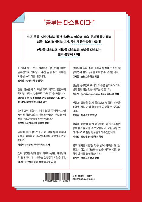 ¼ö¸é°ú ¿îµ¿, ½Ã°£ °ü¸®¿Í °ø°£ °ü¸®ºÎÅÍ ¿¹½À°ú º¹½À, ¹®Á¦Áý Ç®ÀÌ ÆÁ, »îÀ» ´Ù½º¸®´Â Ç÷¡´×¿¡ À̸£±â±îÁö! Å©¸®½ºÃµ û¼Ò³âÀ» À§ÇÑ ¡®´Ù¸¥¡¯ °øºÎ¹ýÀ» Á¦¾ÈÇϴ å ¡ºÅ©¸®½ºÃµ û¼Ò³âÀÇ ´Ù¸¥ °øºÎ¹ý¡»ÀÌ Ãâ°£µÆ´Ù.