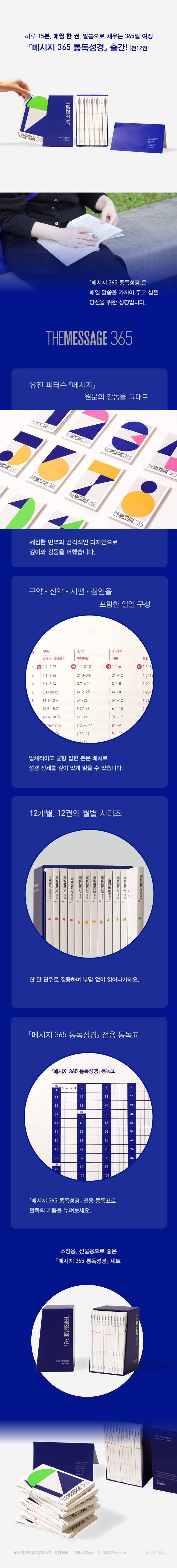 ¡º¸Þ½ÃÁö 365 Åëµ¶¼º°æ¡»Àº ¸ÅÀÏ ¸»¾¸À» °¡±îÀÌ µÎ±â ¿øÇÏ´Â ´ç½ÅÀ» À§ÇÑ ¼º°æÀÔ´Ï´Ù. ¹Ì±¹¿¡¼ ¼ö½Ê ³â°£ »ç¶û¹Þ¾Æ ¿Â º£½ºÆ®¼¿·¯ ¡ºThe One Year Bible¡»ÀÇ ±¸Á¶¿Í Æí¸®¼ºÀ» ¹ÙÅÁÀ¸·Î, ¸ÅÀÏ ±¸¾à¡¤½Å¾à¡¤½ÃÆí¡¤Àá¾ðÀ» ÇÔ²² ÀÐÀ» ¼ö ÀÖµµ·Ï ±¸¼ºÇß½À´Ï´Ù. ÀÌ¿Í °°Àº ÀÔüÀûÀÌ°í ±ÕÇü ÀâÈù º»¹® ¹èÄ¡´Â µ¶ÀÚµéÀÌ ³¯¸¶´Ù ¼º°æ Àüü¸¦ ±íÀÌ ÀÖ°í dz¼ºÇÏ°Ô ¸¸³¯ ¼ö ÀÖµµ·Ï µ½½À´Ï´Ù. ƯÈ÷ ¸¹Àº »ç¶÷µéÀÌ Áßµµ Æ÷±âÇϱ⠽¬¿î ·¹À§±â³ª ¹Î¼ö±â¿¡¼µµ, ½Å¾àÀÇ º¹À½°ú ½ÃÆíÀÇ À§·Î, Àá¾ðÀÇ ÁöÇý¸¦ ÇÔ²² ÀÐÀ¸¸ç Áö·çÇÔ ¾øÀÌ Àо°¥ ¼ö ÀÖ½À´Ï´Ù.