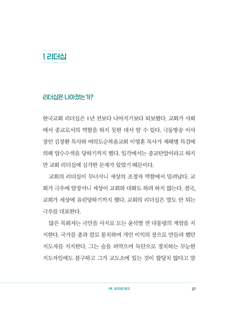 ƯÈ÷, 2025³âÀº Á¤Ä¡¿Í Çѱ¹±³È¸°¡ °áÅ¹ÇØ ±³È¸ ½Å·Úµµ Ãß¶ôÀ» °¡¼Ó½ÃÄ×´Ù. ±×µ¿¾È ½Å¾Ó¸¸ ÁÁÀ¸¸é ±×¸¸À̶ó´Â °³ÀÎÀûÀÎ ±¸¿ø¿¡ ÁýÁßÇß´ø Çѱ¹±³È¸´Â ÀÌÁ¦´Â »çȸÀû ºÎÁ¶¸®¿¡ Çϳª´ÔÀÇ °øÀÇ¿Í »ç¶ûÀ» ÀüÇÒ ¼ö ÀÖµµ·Ï ¼¼»óÀ» ÇâÇÑ ¹ß°ÉÀ½À» ÀçÃËÇØ¾ß ÇÑ´Ù.