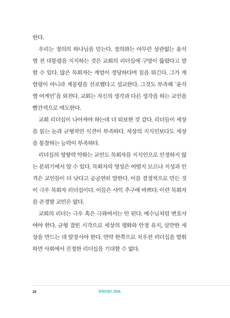 2023³âºÎÅÍ ¹ß°£µÇ´Â ¸ñȸƮ·»µåÀÇ »õ·Î¿î ½Ã¸®Áî°¡ ¡¶¸ñȸƮ·»µå 2026¡·ÀÌ µåµð¾î ³ª¿Ô´Ù. ¸ñȸƮ·»µå´Â ´Ü¼øÈ÷ ¸ñȸÀÇ À¯ÇàÀ» ¼±µµÇϴ åÀÌ ¾Æ´Ï´Ù. ¸ñȸ¿¡ ¸¶ÄÉÆÃ °³³äÀÇ ¡®Æ®·»µå¡¯¸¦ Á¢¸ñ½ÃÄÑ »õ·Î ¹ß°ßÇÏ°í µµÀüÇØ¾ß ÇÒ ºÎºÐÀ» ±¸Ã¼ÀûÀ¸·Î Á¦½ÃÇÑ´Ù. µ¿½Ã¿¡ ±³È¸¿Í ¸ñȸ°¡ 1³â »çÀÌ ¿ì¸® »çȸ¿Í ¹®È ¼Ó¿¡ ¾î¶»°Ô º¯Áֵǰí À¶ÇյǾú´ÂÁö¸¦ Áø´ÜÇϰí, º»Áú¿¡¼ ¹þ¾î³ª Á¦ÀÚ¸®¸¦ Àâ¾Æ¾ß ÇÒ °ÍÀÌ ¹«¾ùÀÎÁö¸¦ ºÐ¼®ÇÑ´Ù.