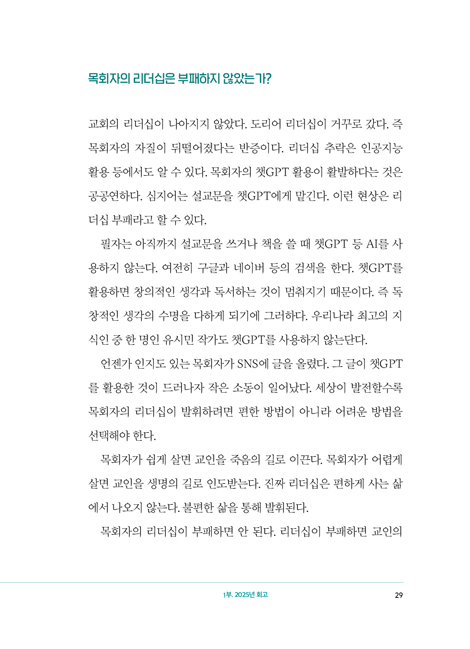 p.51. AI ½Ã´ë¿¡ ±³È¸°¡ ´õ Ȱ¼ºÈµÇ¾î¾ß ÇÒ °ÍÀÌ ¼Ò±×·ìÀÌ´Ù. ±³ÀÎ °£ÀÇ Ä£¹Ð°¨ÀÌ ¾øÀ¸¸é ¿Ü·Î¿ò¸¸ ´À³¢Áö ¾Ê´Â´Ù. ¿ì¿ï°¨ÀÌ ±Ø½ÉÇØÁø´Ù. ¼¼»ó¿¡ AI½Ã´ë¶ó¸é ±³È¸´Â ¼Ò±×·ì ½Ã´ë°¡ µÇ¾î¾ß ÇÑ´Ù. ¼Ò±×·ìÀÌ È°¼ºÈµÈ ±³È¸¿Í ±×·¸Áö ¾ÊÀº ±³È¸ Â÷ÀÌ´Â ¾ÆÁÖ Å¬ °ÍÀÌ´Ù.