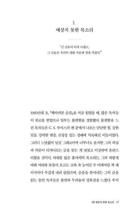 ÀÌ Ã¥¿¡¼ Àè ¿¡½º¿ÍÀÎÀº ¸ñȸÀÚ¿Í ½ÃÀÎÀÇ ¾ð¾î·Î, ¡®³¡¾øÀÌ °ÅÄ¥°í ³¸¼± °æÀ̰¡ ³ÑÄ¡´Â Àüµµ¼¶ó´Â ¼¼°è¡¯ ¼ÓÀ¸·Î ¿ì¸®¸¦ ¾È³»ÇÑ´Ù. ±×·¯¸é¼ »îÀÇ Àǹ̸¦ ã´Â ¿©Á¤Àº »îÀÇ ¸ðµç °èÀýÀ» Àǹ̷Πä¿ì½Ã´Â ½Å½ÇÇϽŠÇϳª´Ô¿¡°Ô¼ ½ÃÀ۵Ǿî¾ß Çϸç, ¿¹¼ö ±×¸®½ºµµ ¾È¿¡¼ ¸¸¹°À» »õ·Ó°Ô ÇϽô Çϳª´Ô¿¡°Ô¼ ¸¶ÃÄ¾ß ÇÑ´Ù´Â Á¡À» ½Å·Ú°¨ ÀÖ´Â ¸ñ¼Ò¸®·Î »ó±â½ÃŲ´Ù. °¢ ÀåÀÌ ³¡³¯ ¶§¸¶´Ù ÀúÀÚ°¡ ´øÁö´Â ¹¬Á÷ÇÑ Áú¹®µéÀ» ²À ¹¬»óÇØ º¸±â ¹Ù¶õ´Ù. ÀÌ Áú¹®µé¿¡¼µµ, ¿ì¸®´Â ½ÃÀÇÀûÀýÇÑ À¯ÀÍ, °ð °á±¹¿¡´Â ¼Ò¸ÁÀÌ °¡µæÇÑ º»¹®¿¡ ´ëÇÑ ÀúÀÚÀÇ ±íÀº ÅëÂû¿¡ ¹ÝÀÀÇÒ ±âȸ¸¦ ¾òÀ» °ÍÀÌ´Ù.
