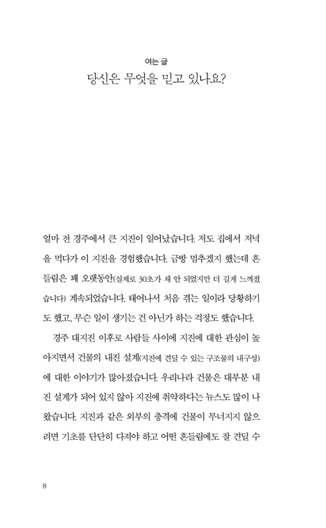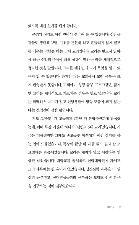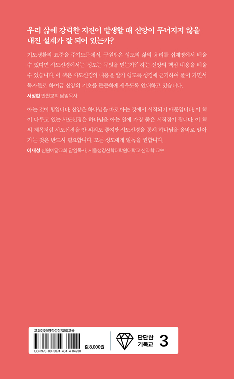 ¡°¿ì¸® »î¿¡ °·ÂÇÑ ÁöÁøÀÌ ¹ß»ýÇÒ ¶§ ½Å¾ÓÀÌ ¹«³ÊÁöÁö ¾ÊÀ» ³»Áø ¼³°è°¡ Àß µÇ¾î Àִ°¡?¡± ¿ì¸®´Â ¸Å ÁÖÀÏ ¿¹¹è ½Ã°£¸¶´Ù ¾Æ¹«·± ¶æµµ ¸ð¸¥ ä »çµµ½Å°æÀ» ¾Ï¼ÛÇϰí ÀÖÁö´Â ¾ÊÀº°¡¿ä? ´©±º°¡ "´ç½ÅÀÇ ½Å¾ÓÀº ¹«¾ùÀԴϱî?"¶ó°í ¹¯´Â´Ù¸é ¸Ó¹µ°Å¸®Áö ¾Ê°í ¸íÈ®ÇÏ°Ô ´ë´äÇÒ ¼ö ÀÖ³ª¿ä? ½Å¾Ó»ýȰÀÇ ¿¬Â÷°¡ ½×¿©µµ Á¤ÀÛ ±âµ¶±³ Áø¸®ÀÇ »À´ë°¡ ¼ ÀÖÁö ¾Ê´Ù¸é, ¿ÜºÎÀÇ ÀÛÀº Ãæ°Ý¿¡µµ ¿ì¸®ÀÇ ½Å¾ÓÀº ½±°Ô ¹«³ÊÁö°í ¸¿´Ï´Ù. ÀÌ Ã¥Àº µüµüÇϰí Áö·çÇϰԸ¸ ´À²¸Á³´ø ±³¸®¸¦, ½Å¾ÓÀ̶ó´Â °Ç¹°À» ưưÇÏ°Ô ¼¼¿ì´Â ÇʼöÀûÀÎ ¡®³»Áø ¼³°è¡¯·Î ¼Ò°³ÇÕ´Ï´Ù. ¼ººÎ Çϳª´Ô, ¼ºÀÚ ¿¹¼ö´Ô, ¼º·É Çϳª´Ô¿¡ ´ëÇÑ À§´ëÇÑ ½Å¾Ó °í¹éÀ» ÀÏ»óÀÇ ¾ð¾î¿Í ¼º°æÀÇ ±Ù°Å·Î ½±°í ¸íÄèÇÏ°Ô Ç®¾î³À´Ï´Ù. »çµµ½Å°æÀº ¾ïÁö·Î ¿Ü¿ö¾ß ÇÏ´Â ÁÖ¹®ÀÌ ¾Æ´Õ´Ï´Ù. ÁÖ¹®Ã³·³ ¿Ü¿ì´ø »çµµ½Å°æÀÇ ÁøÂ¥ Àǹ̸¦ ±ú´Ý°í Èçµé¸² ¾ø´Â ´Ü´ÜÇÑ ½Å¾ÓÀÇ ±âÃʸ¦ ¼¼¿ì±æ ¿øÇÏ´Â ¸ðµç ±×¸®½ºµµÀε鿡°Ô ÀÌ Ã¥À» °·ÂÈ÷ ±ÇÇÕ´Ï´Ù. ÀúÀÚ ¹× ¿ªÀÚ ¼Ò°³