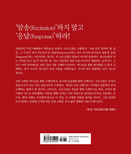 ±âµ¶±³´Â ÀÌõ¿© ³âÀÇ ¿ª»ç °¡¿îµ¥ ¼ö¸¹Àº À§±â ¶§¸¶´Ù ¼¼»óÀ» ÇâÇØ À§·Î¿Í ȸº¹À» Á¦°øÇØ ¿Ô´Ù. ±×¸®½ºµµÀεéÀº Àü´ÉÇϽŠÇϳª´ÔÀÌ ÁֽЏ»¾¸¿¡ ÀÇÁöÇÏ¿©, ±×ºÐÀ» ÇâÇÑ ¹ÏÀ½À» °í¹éÇÏ¸ç »ì¾Æ°£´Ù. ƯÈ÷, °í´ë·ÎºÎÅÍ ÀüÇØÁø ½Å¾ÓÀÇ À¯»êÀº Áö±Ýµµ ¹µ ±³È¸¿¡¼ ÇÔ²² °í¹éµÇ¸ç ¿µÇâ·ÂÀ» ³¢Ä¡°í ÀÖ´Ù. ÀÌ Ã¥Àº ±× °í¹é Áß °¡Àå ¿À·¡µÈ ¡®»çµµ½Å°æ¡¯¿¡ ´ëÇØ ´Ù·é´Ù. ½Å¾Ó °í¹éÀº Çϳª´ÔÀ» ÇâÇÑ °í¹éÀ̸é¼, µ¿½Ã¿¡ °øµ¿Ã¼¸¦ ÇâÇÑ °í¹éÀÌ´Ù. »çµµ½Å°æÀº ¡®¿ì¸®°¡ ¹Ï½À´Ï´Ù¡¯°¡ ¾Æ´Ñ ¡®³»°¡ ¹Ï½À´Ï´Ù¡¯·Î ½ÃÀÛÇÑ´Ù. °³ÀÎÀÇ ½Å¾Ó °í¹éÀ¸·Î ½ÃÀÛÇØ¼ °øµ¿Ã¼°¡ ¸ð¿© °í¹éÇÏ´Â ÇüŰ¡ µÈ °ÍÀÌ´Ù.