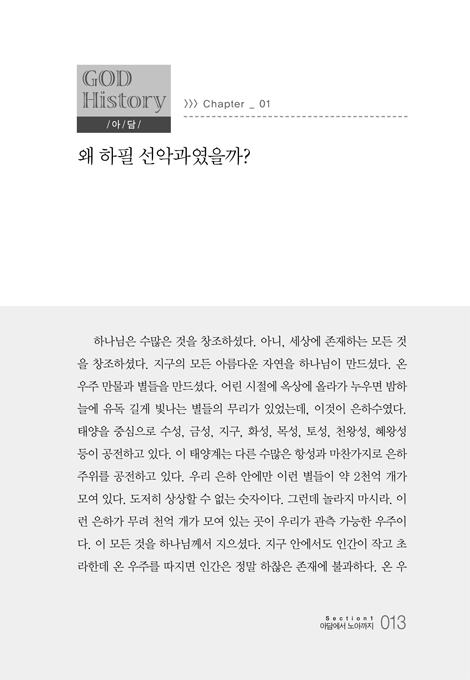 ÀÌ Ã¥Àº ±×µ¿¾È ¹¬»óÇÏ°í °ÀÇÇß´ø ¼º°æÀÇ ³»¿ëÀ» óÀ½ºÎÅÍ ½ÃÀÛÇÑ´Ù´Â Àǹ̷Π¿½ÉÈ÷ Á¤¸®Çؼ ¡¸°« È÷½ºÅ丮¡¹·Î ´ã¾Æ³Â°í, 2ÆíÀÎ ¡¸¹ÙÀ̺í È÷½ºÅ丮¡¹¿¡´Â ¼º°æ°ú ±âµ¶±³ ¿ª»ç¸¦ ³ì¾Æ³Â´Ù. ±×¸®°í 3ºÎÀÛ ¿Ï°áÆíÀÎ ¡¸Å·½º È÷½ºÅ丮¡¹¿¡¼´Â Çϳª´Ô ³ª¶óÀÇ ¸ðÇüÀÎ À̽º¶ó¿¤ÀÇ ¿ÕµéÀ» ÈíÀÔ·Â ÀÖ´Â °£°áÇÔ°ú ÀçÄ¡ ÀÖ´Â ¸»Åõ·Î »ýµ¿°¨ ÀÖ°Ô Ç®¾î³Â´Ù.