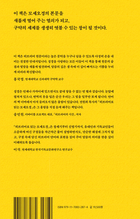 ¡°¹®¹ýÀ» Á߽ɿ¡ µÎ±âº¸´Ù ¼º°æ º»¹®À» Á߽ɿ¡ µÎ°í, ±× ³»¿ëÀ» ´õ¿í Á¤È®È÷ ÀÌÇØÇϱâ À§ÇÑ µµ±¸·Î¼ ¹®¹ýÀ» Ȱ¿ëÇÕ´Ï´Ù.¡± ÀÌ °í¹éÀº ÀÌ Ã¥ÀÌ Çмú¼°¡ ¾Æ´Ï¶ó ¼º°æ º»¹®ÀÇ ¼¼°è·Î ÀεµÇÏ´Â ¾È³»¼ÀÓÀ» Áõ¾ðÇÕ´Ï´Ù. È÷ºê¸®¾î ÇÑ ´Ü¾î°¡ ¾î¶»°Ô â¼¼±âÀÇ ÆòµîÀ» ¹àÈ÷°í, Ãâ¾Ö±Á±âÀÇ ½Åºñ¸¦ µå·¯³»¸ç, ·¹À§±âÀÇ °Å·èÀ» Á¶¸íÇϸç, ¹Î¼ö±âÀÇ °íÅëÀ» ±â·ÏÇϰí, ½Å¸í±âÀÇ ±â¾ïÀ» ºÒ·¯¿À´ÂÁö—±× ±æÀ» µû¶ó°¡´Ù º¸¸é, ¼º°æÀº ´õ ÀÌ»ó ³°Àº ±â·ÏÀÌ ¾Æ´Ï¶ó Áö±Ý ¿ì¸®ÀÇ ½Å¾ÓÀ» ¿©´Â ºÒºûÀÌ µË´Ï´Ù.