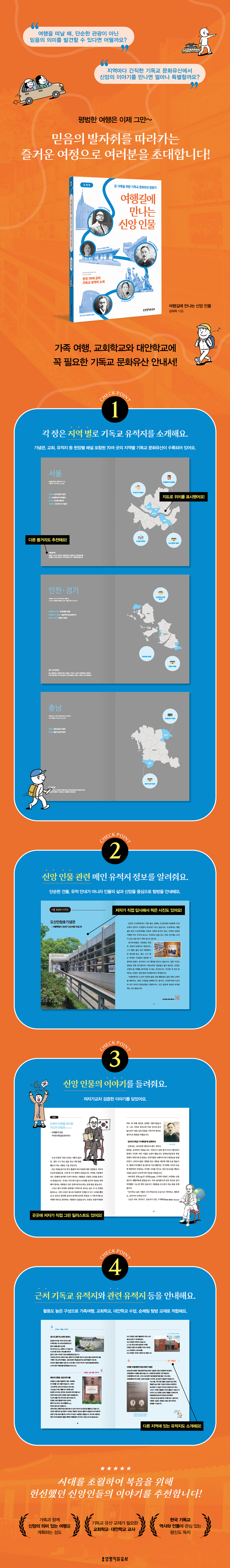 º»¼´Â ±×°£ ¿©·¯ ±ÇÀÇ ½Å¾Ó Àι°¿¡ ´ëÇÑ Àü±â¿Í ¸¸È ´ëº»À» ½è´ø ÀúÀÚ°¡ Àü±¹ °¢Áö ±âµ¶±³ À¯ÀûÁö¸¦ ¹ß·Î ¶Ù¸ç »çÁø¿¡ ´ã°í ÀÏ·¯½ºÆ®¸¦ ±×·Á¼ Àι° º°·Î ¼Ò°³ÇÑ °ÍÀ¸·Î, °¡Á· ¿©ÇàÀº ¹°·Ð ±³È¸Çб³¿Í ´ë¾ÈÇб³ µî¿¡¼ Ȱ¿ëµµ°¡ ³ôÀº Ã¥ÀÔ´Ï´Ù.