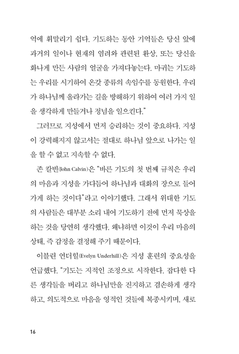»õº® ±âµµÈ¸¿¡ ¸ÅÀÏ ³ª¿ÀÁö¸¸ ½ÇÁ¦·Î »î¿¡¼ ±âµµÀÇ ´É·ÂÀÌ Àß ³ªÅ¸³ªÁö ¾Ê´Â ºÐÀÌ ÀÖ´Ù. ´Ã »õº®À» ±ú¿ì´Âµ¥ Á¤ÀÛ ±âµµ ÀÚü°¡ ±ú¾î ÀÖÁö ¾ÊÀ¸¸é ½ÇÁ¦·Î ±âµµÇÑ´Ù°í ÇÒ ¼ö ¾ø´Ù. ±×·± ±âµµ »ýȰ¿¡´Â º°·Î ´É·ÂÀÌ ¾ø´Ù. ±×·¸´Ù¸é ±ú¾î ÀÖ´Â ±âµµ´Â ¾î¶»°Ô ÇÏ´Â °ÍÀϱî? ù°, ±âµµ ÀÚü¿¡ ÁÖ´Ô°úÀÇ ±ä¹ÐÇÏ°í ±íÀº ¿µÀû ±³Á¦°¡ ÀÖ¾î¾ß ÇÑ´Ù. µÑ°, ¹«¾ùÀ» ±âµµÇÒÁö Á¤È®ÇÏ°Ô ¾Ë¾Æ¾ß ÇÑ´Ù. ±¸Ã¼ÀûÀ¸·Î ±âµµ·Î ¿Ã·Á µå¸± ±âµµ Á¦¸ñÀÌ ÀÖ¾î¾ß ÇÑ´Ù. ¼Â°, ±âµµÇÒ ¶§ À̱âÀûÀÌ°í ¼¼¼ÓÀûÀÎ ¸¶À½À» ¹ö¸®°í, ÁÖ´ÔÀÇ ³ª¶ó¿Í ¿µ±¤À» À§ÇÑ »ç¿ªÀûÀÎ ¸¶À½°¡ÁüÀ» °¡Á®¾ß ÇÑ´Ù. _116-117