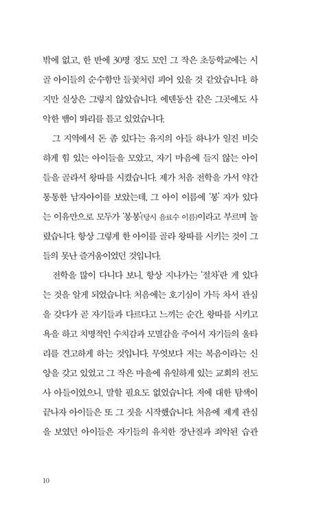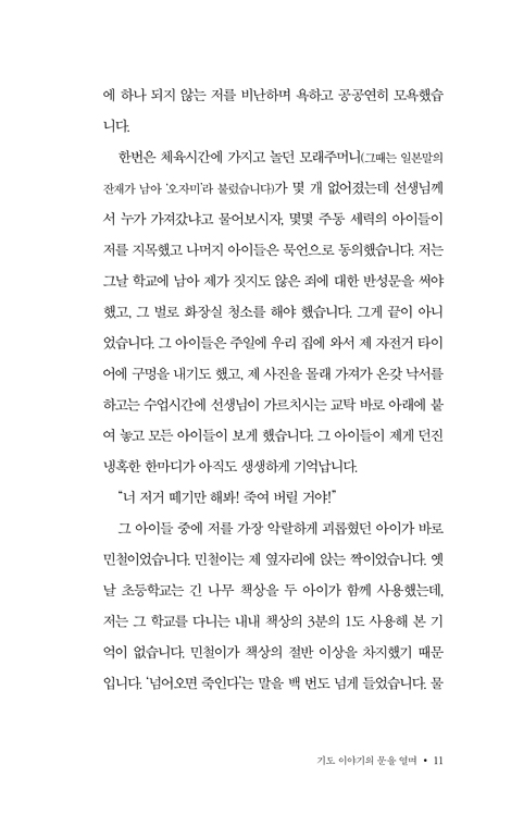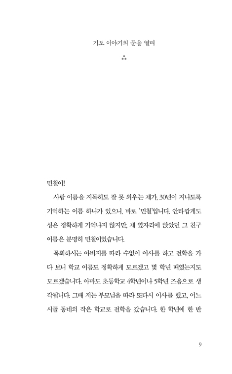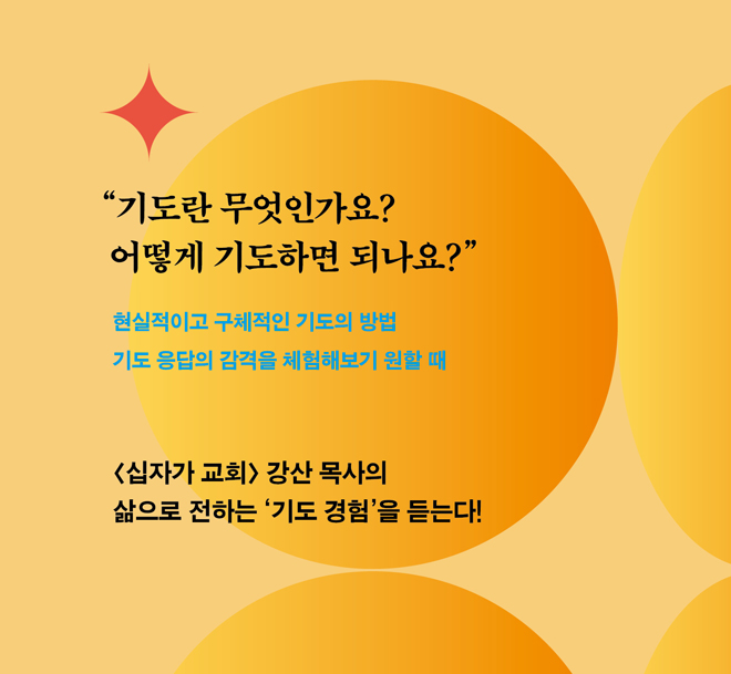 ¿µÀû »ýȰ¿¡ ÀÖ¾î ±âµµ´Â ¾ðÁ¦³ª ¡®´ú ÀÍÀº °úÀÏ¡¯ °°Áö¸¸, ´ú ÀÍÀº °úÀÏ °°Àº ±âµµ¸¦ ¸Ô¾î¾ß ¿ì¸®´Â »ý¸íÀ» ´©¸®¸ç »ì¾Æ°£´Ù. ÆøÇ³ÀÌ Áö³ª°£ µÚ¿¡ ã¾Æ¿À´Â °í¿äÇÔó·³ ±âµµ¿¡ ´ëÇÑ °»ê ¸ñ»ç´ÔÀÇ ´ã´ãÇÑ °í¹é°ú ±ú´ÞÀ½Àº °úÇÏÁöµµ ¸ðÀÚ¶óÁöµµ ¾Ê°Ô ¡®±âµµ¡¯¸¦ ¿ì¸®¿¡°Ô °¡¸£ÃÄ ÁØ´Ù. »îÀÌ ¹¯¾î³ª´Â À̾߱⠼ӿ¡ °æÇèÇÑ ±âÀûµéÀ» »ì¦ µå·¯³¾ ¼öµµ ÀÖÁö¸¸, È£ÈíÀÌ »ç¶÷À» »ì¸®µí ±âµµ¿¡ ÁýÁßÇÏ·Á°í ¡®±âµµ¡¯ÀÇ º»ÁúÀ» µå·¯³»·Á°í ¾Ö¸¦ ¾´´Ù. °í¹éÀº ÀÖÀ¸³ª ½º½º·Î ¼û½¬±â¸¦ ÁÖÀúÇÏ´Â °Åµì³ ¸ðµç À̵鿡°Ô ÀÌ Ã¥À» ±ÇÇÑ´Ù.
