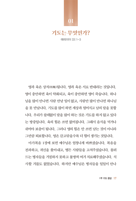 ±×¸®½ºµµÀÎÀÌ ÇÏ·ç¿¡ 1½Ã°£¾¿ ±âµµÇÏ´Â °Íµµ °áÄÚ ½¬¿î ÀÏÀº ¾Æ´Õ´Ï´Ù. ±×·¯³ª 10³â° 1½Ã°£¸¸ ±âµµÇϸé Áøº¸´Â ÀϾÁö ¾Ê½À´Ï´Ù. ´õ ±íÀº ±âµµ¸¦ Çϱ⠿øÇÑ´Ù¸é Áö±Ý±îÁö ÇØ¿À´ø ¹æ½Ä, ÆÐÅÏ¿¡¼ ¹þ¾î³ª »õ·Î¿î °æÇè¿¡ µµÀüÇØ¾ß ÇÕ´Ï´Ù. ±Ý½Ä±âµµ¸¦ ÇϵçÁö, ±âµµ¿ø¿¡ ¿Ã¶ó°¡ ±âµµÇϵçÁö, ¿¹¼ö´ÔÀ» º»¹Þ¾Æ ¿Â¹ãÀ» Áö»õ¿ö ±âµµÇÏ´Â °ÍÀÔ´Ï´Ù. ¿µÀû Áøº¸°¡ ÀÖ´Â ±íÀº ±âµµ¿¡ µµÀüÇÒ ¶§ ¿ì¸®´Â »õ·Î¿î ÀºÇý¸¦ °æÇèÇÏ°Ô µË´Ï´Ù. p.98