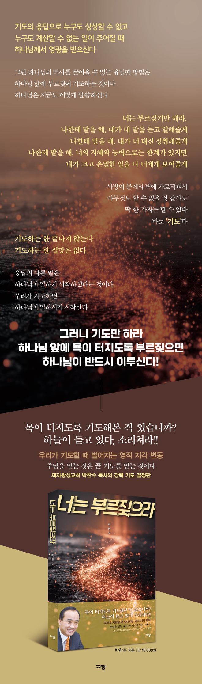 ±âµµ´Â ÀÚ½ÅÀÇ ¼÷¸íÀ̰í, »ç¶ûÀ̰í, ¼÷Á¦¶ó°í °í¹éÇÏ´Â ±×´Â 16»ì ±³È¸ ¹®ÅÎÀ» ³Ñ¾î 6°³¿ùÀÇ Á¾±³ÀÎÀÇ ½Ã°£À» Áö³ª ÁÖ´ÔÀ» ¿µÁ¢ÇÑ ÈÄ ±âµµ¿Í ¿µ¿øÇÑ ¹þÀÌ µÇ¾ú´Ù. ±³È¸¸¦ °³Ã´ÇÑ ÀÌÈÄ¿¡´Â ¡°±âµµÇÏ´Â ¸ñ»çº¸´Ù ±âµµÇÏ°Ô ¸¸µå´Â ¸ñ»ç°¡ ´õ À§´ëÇÏ´Ù¡±¶ó´Â ¸íºÐÀ¸·Î ¡®±âµµ¡¯¸¦ ¿ÜÃÄ ¸¹Àº ±âµµÀÇ »ç¸íÀÚµéÀ» ÀÏÀ¸Ä×´Ù. ±× »ç¸í¿¡ µû¶ó Äڷγª°¡ ÇÑÂüÀÌ´ø 2022³â 12¿ùºÎÅÍ ¸ÅÁÖ ±Ý¿äÀÏ ¡®³Ê´Â ºÎ¸£Â¢À¸¶ó¡¯¶ó´Â ÁÖÁ¦·Î Áö±Ý±îÁö 150ȸ ÀÌ»ó ¼³±³Çß´Ù. ÀÌ Ã¥Àº ¹Ù·Î ¡®³Ê´Â ºÎ¸£Â¢À¸¶ó¡¯ ½Ã¸®ÁîÀÇ °áÁ¤ÆÇÀÌÀÚ ±âµµ¿¡ ´ëÇÑ ±×ÀÇ °·ÄÇÑ ¿¸Á°ú µµÀüÀ» ´ã°í ÀÖ´Ù.