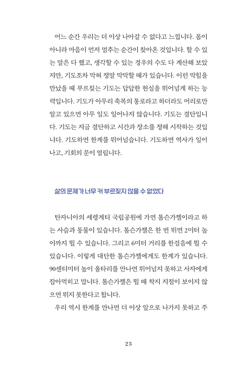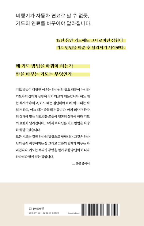 ¼øº¹À½¾Èµð¿Á±³È¸ ´ãÀÓ¸ñ»çÀÎ ¹ÚÂù¼± ¸ñ»ç´Â »ç¸ðÀÎ ÁøÁ¤ÁÖ ¾à»ç¿Í ÇÔ²² ±³È¸¸¦ °³Ã´ÇÏ¸ç ±âµµ¿¡ Èû½è´Ù. ±³È¸°¡ ºÎÈïµÇ±æ ¼Ò¸ÁÇÏ¸ç ¿À·¡ ±âµµÇßÁö¸¸, ±× ±â´ë´Â 10³âÀÌ Áö³ªµµ ÀÌ·ç¾îÁöÁö ¾Ê¾Ò°í, ±³È¸´Â ¹ÌÀÚ¸³¿¡¼ ¹þ¾î³ªÁö ¸øÇß´Ù. Áø¾×ÀÌ ºüÁ®³ª°¡ ´õ ÀÌ»ó ÈûÀÌ ¾ø´Ù°í ´À³¥ ¶§ ¡°ºñÇà±â°¡ ÀÚµ¿Â÷ ¿¬·á·Î ³¯ ¼ö ¾øµíÀÌ ±âµµµµ ¿¬·á¸¦ ¹Ù²Ù¾î¾ß ÇÑ´Ù¡±´Â »ç½ÇÀ» ±ú´Ý°Ô µÇ¾ú´Ù. ±×¶§ºÎÅÍ À̵éÀº ¿¬·á¸¦ ¹Ù²Ù¾î ´Þ¶ó°í ±âµµÇß°í, ´Ù½Ã ±âµµ°¡ ºÒºÙ¾ú´Ù. ¸»¾¸ÀÌ ±íÀÌ ±ú´Þ¾ÆÁö¸ç Çϳª´ÔÀÌ ÇÔ²²ÇϽŴٴ Ȯ½ÅÀÌ »ý°å´Ù. ±×¸®°í ¾î·Á¿ò¿¡¼ ¹þ¾î³ª°Ô µÇ¾ú´Ù. ÀúÀÚ´Â ÀÌ·¯ÇÑ °æÇèÀ» ¹ÙÅÁÀ¸·Î ÆÇÀ» ¹Ù²Ù´Â ±âµµ¸¦ ÀÌ Ã¥¿¡ ´ã¾Ò´Ù. Ãູ±âµµ, ¼±Æ÷±âµµ, Çսɱ⵵ µî 15°¡ÁöÀÇ ±âµµ¸¦ ÅëÇØ Çϳª´ÔÀ» ´õ¿í ¶ß°Ì°Ô °æÇèÇϰí, »îÀÇ ¹®Á¦¿¡ ´ëÇÑ µ¹ÆÄ±¸¸¦ ãÀ» ¼ö ÀÖ´Ù.