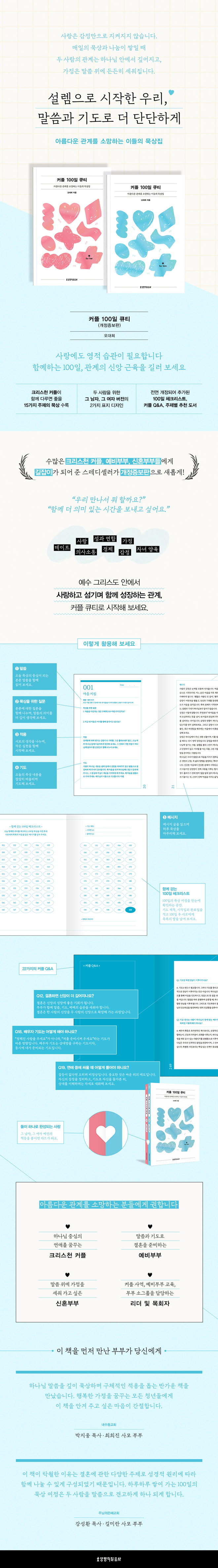 2002³â ù Ãâ°£ ÀÌÈÄ, ¼ö¸¹Àº Å©¸®½ºÃµ Ä¿ÇÃ, ¿¹ºñºÎºÎ, ±×¸®°í ½ÅÈ¥ºÎºÎµé¿¡°Ô Çϳª´Ô ¾È¿¡¼­ÀÇ ¾Æ¸§´Ù¿î °ü°è¸¦ ´©¸± ¼ö ÀÖµµ·Ï ±æÀâÀ̰¡ µÇ¾î ÁØ ½ºÅ׵𼿷¯ ¡ºÄ¿ÇÃÀ» À§ÇÑ 100ÀÏ Å¥Æ¼¡»°¡ °³Á¤Áõº¸ÆÇÀ¸·Î »õ·Ó°Ô Ãâ°£µÇ¾ú½À´Ï´Ù. Ưº°È÷ ±× ³²ÀÚ, ±× ¿©ÀÚ ¹öÀüÀÇ 2°¡Áö Ç¥Áö µðÀÚÀÎÀ» ¼±º¸ÀÌ´Â À̹ø °³Á¤Áõº¸ÆÇÀº Àü¸é °³Á¤µÈ ³»¿ë°ú, ÇÔ²² °È´Â 100ÀÏ Ã¼Å©¸®½ºÆ®, Ä¿Çà Q&A, ÁÖÁ¦º° Âü°í µµ¼­ µîÀ» ¼ö·ÏÇØ ÇÔ²²ÇÏ´Â Àç¹Ì¸¦ ´õÇÒ °ÍÀÔ´Ï´Ù.