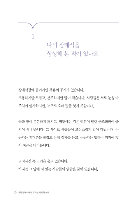 ÀúÀÚ´Â Àå·Ê¸¦ ÁغñÇÏ´Â ÀÏÀÌ Á×À½À» ºÒ±æÇÏ°Ô ¾Õ´ç±â´Â °ÍÀÌ ¾Æ´Ï¶ó, »ç¶ûÀ» ¹Ì·çÁö ¾Ê°í ¿ë¼¸¦ ´ÊÃßÁö ¾ÊÀ¸¸ç ¹ÏÀ½À¸·Î ¿À´ÃÀ» Á¤µ·ÇÏ´Â ¿µÀû °á´ÜÀÓÀ» Â÷ºÐÇÏ°í ¼³µæ·Â ÀÖ°Ô º¸¿© ÁÝ´Ï´Ù.
