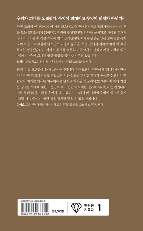 ÀúÀÚ´Â ¹«½ÃµÇ°í ¿Ö°îµÈ ȸ°³ÀÇ ¼º°æÀû Àǹ̸¦ ÀÌ ÀÛÀº Ã¥¿¡¼ ¹àÈ÷ µå·¯³À´Ï´Ù. ȸ°³¿Í °ü·ÃµÈ ¸¹Àº ¿ÀÇØµéÀ» ¸ñȸÀÚÀÇ ¸¶À½À¸·Î ¼¼½ÉÈ÷ ´Ù·ç¸é¼ ±³Á¤ÇØ ÁÝ´Ï´Ù. ¡®¿©´Â ¸»¡¯¿¡¼ ÀúÀÚ°¡ ¹àÈù ÀÌ Ã¥ÀÇ ¸ñÇ¥´Â ¼º°øÇß½À´Ï´Ù. ÀúÀڴ ȸ°³¸¦ ÃæºÐÈ÷ ¾Æ¸§´ä°Ô ¹¦»çÇß°í, Àú¸¦ Æ÷ÇÔÇØ Àд À̵éÀÇ °¡½¿¿¡ ȸ°³¸¦ ÇâÇÑ ¿¸ÁÀ» ºÒ¾î³Ö¾î ÁÖ°í ÀÖ½À´Ï´Ù. _±èÇüÀÍ º¦¼£·Ò±³È¸ ´ãÀÓ¸ñ»ç, ¡º¿ì¸®°¡ Çϳª´ÔÀ» ¿ÀÇØÇß´Ù¡» ÀúÀÚ È¸°³, Á¤¸» ¿À·£¸¸¿¡ µé¾î º¸´Â ÁÖÁ¦ÀÔ´Ï´Ù. Çѱ¹±³È¸ÀÇ °´Ü¿¡¼ ¡®È¸°³¡¯¶ó´Â ´Ü¾î°¡ »ç¶óÁø Áö ¿À·¡µÇ¾ú½À´Ï´Ù. ¼ÒÀ§ Ä¡´Â ¼³±³´Â ¸¹Áö¸¸ ȸ°³ÀÇ º¹À½Àº ¼±Æ÷µÇÁö ¾Ê½À´Ï´Ù. ȸ°³´Â Ä¡À¯³ª ȸº¹À̶ó´Â ´Ü¾î·Î ´ëÄ¡µÈ Áö ¿À·¡µÇ¾ú½À´Ï´Ù. ÀúÀÚÀÇ ÀÌ Ã¥Àº ¿ì¸®·Î ÇÏ¿©±Ý ¿¹¼ö´ÔÀÇ Ã¹ ¼³±³¿¡, ¸¶¸£Æ¾ ·çÅÍÀÇ 95°³Á¶ ³íÁ¦ÀÇ Ã¹ Á¶Ç׿¡, ±×¸®°í Çѱ¹±³È¸ÀÇ 1907³â ´ëȸ°³ ¿îµ¿¿¡ ÁÖ¸ñÇÏ°Ô ÇÕ´Ï´Ù. ÀÌ Ã¥ÀÇ °¡Àå Å« ÀåÁ¡Àº ȸ°³¿¡ ´ëÇÑ ±×µ¿¾ÈÀÇ ¿©·¯ °ü½ÀÀû ¿ÀÇØ¸¦ Àϰſ¡ Á¦°ÅÇÑ´Ù´Â °ÍÀÔ´Ï´Ù. À̸¦ ÅëÇØ ȸ°³°¡ ¿Ö º¹À½ÀÎÁö, ¿Ö ±â»ÝÀÎÁö, ±×·¡¼ ¿Ö »ç¶ûÇÒ ¼ö¹Û¿¡ ¾ø´ÂÁö ½±°Ô ÀÌÇØÇÏ°Ô ¸¸µì´Ï´Ù. ÀÌ Ã¥¿¡ Á¦½ÃµÈ ¿©·¯ ¼º°æÀû ÁÖÇØ¿Í ¿¹½ÃµéÀº Àд À̵鿡°Ô ¶Ç ´Ù¸¥ ±â»ÝÀ» ¼±»çÇÕ´Ï´Ù. À쫆 ̴À» ÆîÄ¡¸é µ¤À» ¼ö ¾øÀ» °ÍÀÔ´Ï´Ù. _À̼ºÈ£ °í·Á½ÅÇдëÇпø ¿ª»ç½ÅÇÐ ±³¼ö ¸ñÂ÷