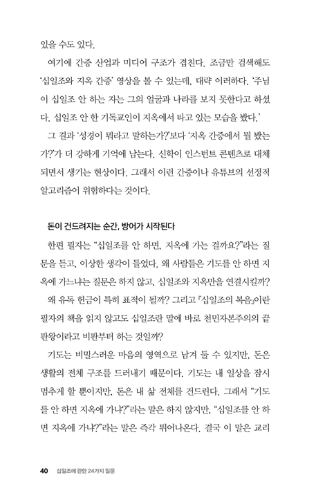 »ç¶÷µéÀÌ ½ÊÀÏÁ¶¿¡ ¹Î°¨ÇÑ ÀÌÀ¯´Â °á±¹ ½ÊÀÏÁ¶°¡ µ· ¹®Á¦À̱⠶§¹®ÀÌ´Ù. ÀúÀÚÀÇ ¸»Ã³·³ ¿ì¸®´Â ½ÊÀÏÁ¶¶ó´Â ½Å¾Ó ½ÇõÀ» ÅëÇØ µ·ÀÇ °Å¿ï ¾Õ¿¡ ¼¼ ³ª´Â ´©±¸Àΰ¡¸¦ ¹¯°í, ¾î¶² Á¦ÀÚÀΰ¡¸¦ ¹¯°Ô µÈ´Ù. ±èÁöÂù ±³¼ö´Â º»¼¸¦ ÅëÇØ ±×ÀÇ ¿ªÀÛ ¡º½ÊÀÏÁ¶ÀÇ º¹À½¡»¿¡¼ ¸ø´Ù ÇÑ 24°¡Áö Áú¹®¿¡ ´äÇϰí ÀÖ´Ù. ½ÊÀÏÁ¶¿¡ ´ëÇÏ¿© ¿ì¸®°¡ ¹¯°í ½ÍÀº °ÅÀÇ ¸ðµç Áú¹®À» ¸Á¶óÇϰí ÀÖ´Ù°í ÇØµµ °ú¾ðÀÌ ¾Æ´Ï´Ù.