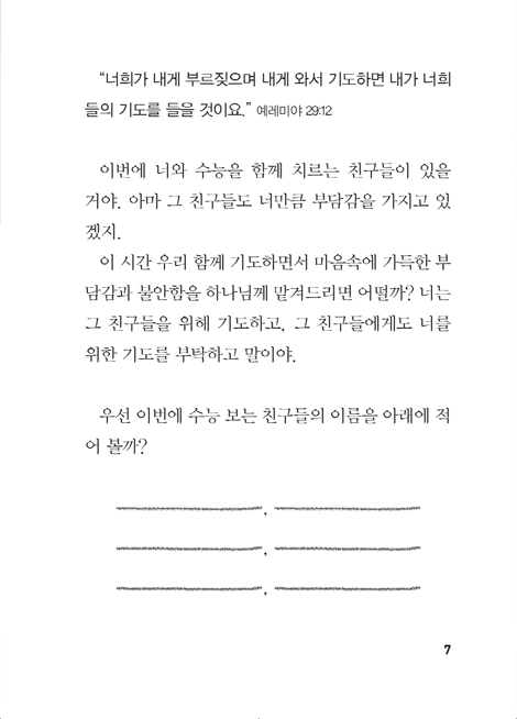 ¾Æ¸¶ ¼ö´ÉÀ» ÁغñÇÏ¸ç ¹«Ã´ ¹Ù»Ú°Ô º¸³ÂÀ» °Å¾ß. ´Ã ½Ã°£ÀÌ ºÎÁ·Çß°ÚÁö. ¾î¼¸é ¸¶À½¼Ó¿¡ ºÒ¾È°ú ¾Ð¹Ú, ºñ±³¿Í ÃÊÁ¶ÇÔ °°Àº ÀÛÀº ¾Æ¿ì½´ºñÃ÷°¡ ³Ê¸¦ °è¼Ó Èçµé¾úÀ»Áöµµ ¸ô¶ó. ÇÏÁö¸¸ ±×·²¼ö·Ï ´õ ´Ü´ÜÇÏ°Ô ÀÚ½ÅÀ» ÁöÄÑ¾ß ÇØ. ¾Æ¹«¸® ½Ã°£ÀÌ ¾ø¾îµµ, ¾Æ¹«¸® ÇǰïÇØµµ ÀÚ½ÅÀ» ¹æÄ¡ÇÏÁö ¾Ê¾ÒÀ¸¸é ÇØ. ¿ÊÂ÷¸²µµ ´ÜÁ¤È÷ ²Ù¹Ì°í, ¸ÀÀÖ´Â °Íµµ ã¾Æ ¸Ô°í, ¸¼Àº ÇÏ´Ã ¾Æ·¡¿¡¼ Àá±ñÀÌ¶óµµ »êÃ¥À» ÇØ ºÁ. ±×·¯¸é ¹®µæ »ì¾Æ°¥ ÀÌÀ¯°¡ º¸À̰í, ÀÚ½ÅÀÌ ¼¼»ó¿¡¼ Á¤¸» °¡Ä¡ ÀÖ´Â Á¸Àçó·³ ´À²¸Áú °Å¾ß. ´õ¿íÀÌ ¿ì¸®´Â Çϳª´ÔÀÇ ÀÚ³àÀݾÆ. ¼¼»óÀÌ ¹¹¶ó ÇØµµ, ½ÃÇè Á¡¼ö°¡ µµ¿ÍÁÖÁö ¾Ê¾Æµµ ÀÌ¹Ì ³Ê´Â ¾Æ¸§´ä°í ¼ÒÁßÇÑ Á¸Àç¾ß.