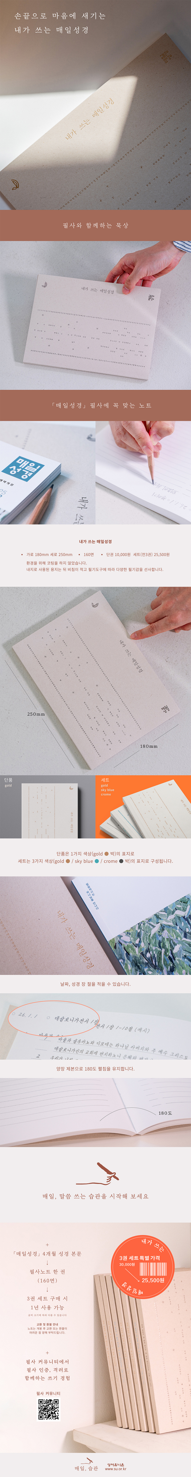 ¼Õ³¡À¸·Î ¸¶À½¿¡ »õ±â´Â ¸ÅÀϼº°æ ¡¸¸ÅÀϼº°æ¡¹À» ÅëÇØ ¼º°æ ¹¬»óÀÇ ¹Ù¸¥ ±âÁØÀ» Á¦½ÃÇØ ¿Â ¼º¼À¯´Ï¿ÂÀÌ »õ·Ó°Ô Á¦¾ÈÇÏ´Â ÇÊ»ç¿Í ÇÔ²²Çϴ ťƼ. <³»°¡ ¾²´Â ¸ÅÀϼº°æ> ÇÊ»ç³ëÆ®´Â ÇÊ»ç»Ó ¾Æ´Ï¶ó ťƼ¿¡µµ Ȱ¿ëÇÒ ¼ö ÀÖ´Ù. ¡¸¸ÅÀϼº°æ¡¹À¸·Î ¹¬»óÇϰí Àû¿ëÇß´Ù¸é, ÀÌÁ¦ ¡¸¸ÅÀϼº°æ¡¹À» ¿Å°Ü ÀûÀ¸¸ç ¸»¾¸À» ¸ö°ú ¸¶À½¿¡ »õ±â°í ½À°üÀ¸·Î ÀÚ¸® Àâ°Ô ÇØ º¸ÀÚ. ³ªÀÇ ¹¬»ó ¿©Á¤ÀÌ Â÷°îÂ÷°î ³ëÆ®¿¡ ±â·ÏµÇ¸ç ½×¿© °¥ °ÍÀÌ´Ù. *1³â µ¿¾È ¡¸¸ÅÀϼº°æ¡¹À» ÇÊ»çÇÒ ¼ö ÀÖ´Â ¼¼Æ® 3±Ç ¼¼Æ®·Î 1³â µ¿¾È ¡¸¸ÅÀϼº°æ¡¹À» ÇÊ»çÇÒ ¼ö ÀÖ´Ù(ÃÑ 480¸é). ¡¸¸ÅÀϼº°æ¡¹ Çʻ翡 ²À ¾Ë¸ÂÀº µðÀÚÀÎ ¨ç ¡¸¸ÅÀϼº°æ¡¹°ú ÇÔ²²ÇÒ ¶§ °¡Àå ¾Ë¸ÂÀº µðÀÚÀΰú ±¸¼ºÀ¸·Î Á¦ÀÛµÈ ³ëÆ®. Ç¥ÁöÀÇ ¼º°æ ¸ñ·Ï¿¡ ±× ´ÞÀÇ º»¹®À» Ç¥½ÃÇÒ ¼ö ÀÖ°í, À帶´Ù ÀÖ´Â ³¯Â¥¿Í ÀåÀý Ç¥±â¶õÀ» Ȱ¿ëÇÏ¿© ±×³¯ÀÇ ¸»¾¸À» ±â·ÏÇÒ ¼ö ÀÖ´Ù. ¨è 180µµ ÆîħÀ» À¯ÁöÇÏ´Â ¾çÀå Á¦º»°ú ºñħÀÌ ÀûÀº ¿ëÁö·Î Á¦ÀÛµÈ ÇÊ»ç Àü¿ë ³ëÆ®·Î, Æí¾ÈÇÑ ÇÊ±â°æÇèÀ» ¼±»çÇÑ´Ù. ¨é <³»°¡ ¾²´Â ¸ÅÀϼº°æ> ÇÊ»ç³ëÆ® ÇÑ ±ÇÀ¸·Î ¡¸¸ÅÀϼº°æ¡¹ µÎ È£¸¦(4°³¿ù ºÐ·®), ¼¼ ±Ç ¼¼Æ® ±¸¸Å ½Ã ¡¸¸ÅÀϼº°æ¡¹ ¿©¼¸ È£¸¦(1³â ºÐ·®) ÇÊ»çÇÒ ¼ö ÀÖ´Ù(´Ü, ±Û¾¾ Å©±â¿¡ µû¸¥ Â÷ÀÌ´Â ¹ß»ýÇÒ ¼ö ÀÖ´Ù). *´ÜǰÀº ÇÑ °¡Áö »ö»ó Ç¥Áö·Î(gold ¹Ú), ¼¼Æ®´Â ¼¼ °¡Áö »ö»ó Ç¥Áö·Î(gold/sky blue/crome ¹Ú) ±¸¼ºµÇ¾î ÀÖ´Ù. **ÇÔ²²ÇÏ´Â ¾²±â °æÇè-¸ÅÀϼº°æ ÇÊ»ç Ä¿¹Â´ÏƼ ¼·ÎÀÇ Çʻ縦 ÀÎÁõÇÏ°í °Ý·ÁÇÏ´Â ¡®ÇÊ»ç Ä¿¹Â´ÏƼ¡¯¸¦ ÅëÇØ ¡¸¸ÅÀϼº°æ¡¹ ÇÊ»ç 縰Áö¿¡ Âü¿©ÇØ º¸¼¼¿ä! |